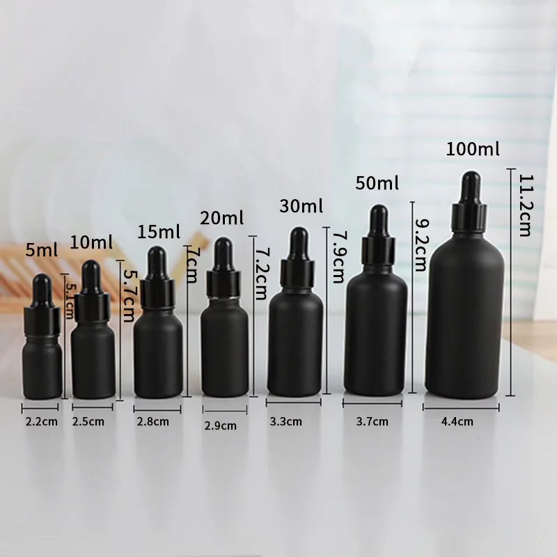 Black 100ml Glass Essential Oil Dropper Bottle Screen Printing Diffuser Cream Facial Cleanser Face Cream Packaging